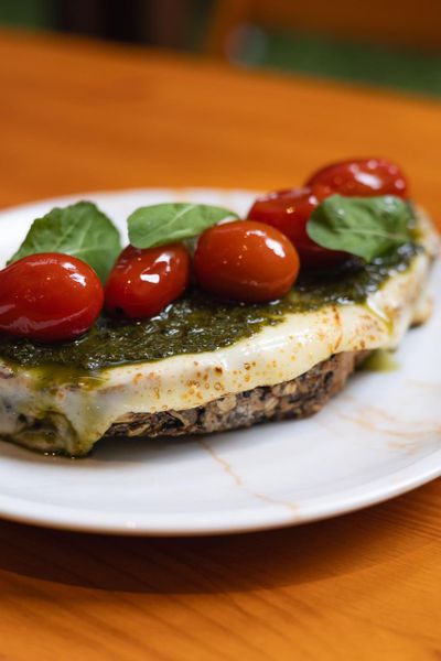 Toast de tomates, queijo e pesto